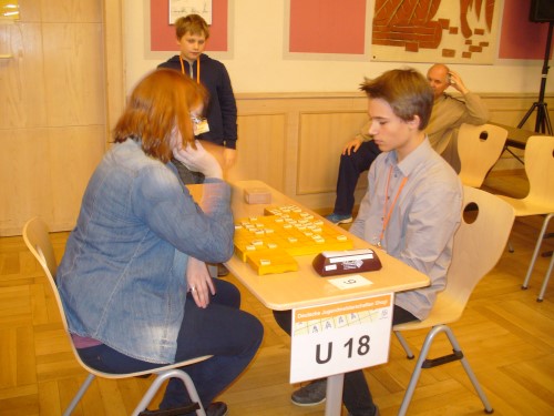Sieg von Tobias gegen Jacob, den Vorjahres U18-Dritten. Nach der 6. Runde war er mit Atilla punktgleich. Da sie nicht gegeneinander
