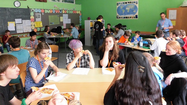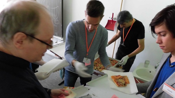 Pizza-Essen war gut durchorganisiert wurde gut angenommen von den Teilnehmern. Zwischen den Runden konnte man im Analyseraum